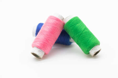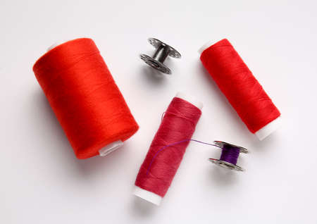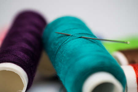 rolls of colorful threads, close-up and top view. home set for clothes repair, colorful thread