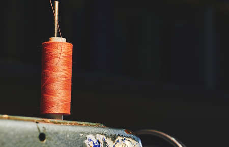 The spool of thread on the table. Thread on a reel for craft. Ma