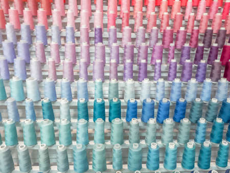 Colorful spools of sewing thread. Colored thread for sewing