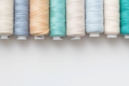 Colorful sewing thread placed on a white back