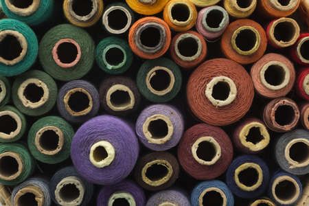 Close up Rolls of Vintage Colorful Threads.