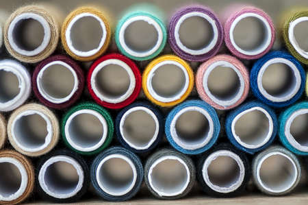 A collection of sewing threads. Close-up view.