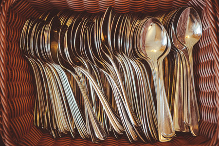 Close-up illustration of a polished silver spoon, emphasizing its elegant design and reflective surface. Perfect for themes related to dining, luxury, and vintage cutlery.