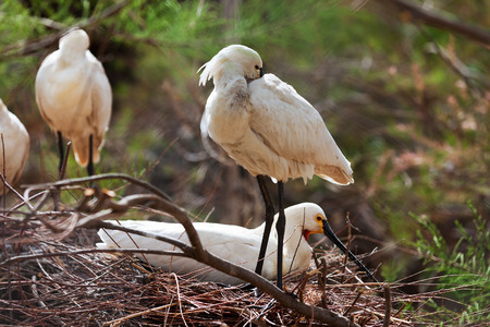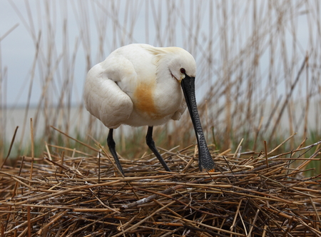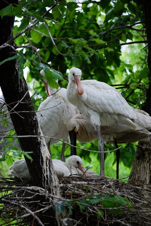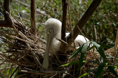 Common Spoonbill (Platalea leucorodia) in nest