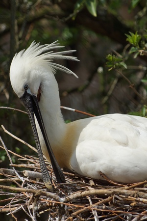 Nesting Eurasian Spoonbill - Platalea leucorodia