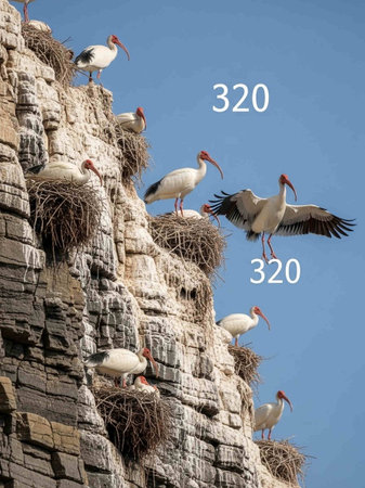 Large colony of great egrets guarding their treetop nests