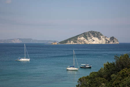 Porto Vromi on Zakinthos Island.Sights of the Zakinthos Island. Best beaches in Greece. Yachts and sea.