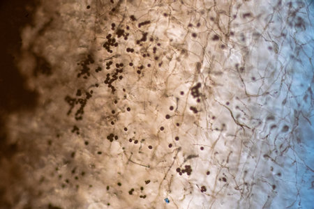 Backgrounds Colony Characteristics of Rhizopus (bread mold) is a genus of common saprophytic fungi, Rhizopus (bread mold) under the microscope.