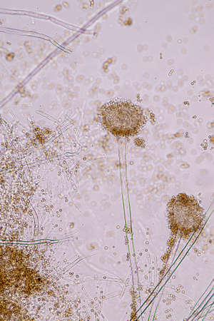 Aspergillus (mold) under the light microscopic view for education.