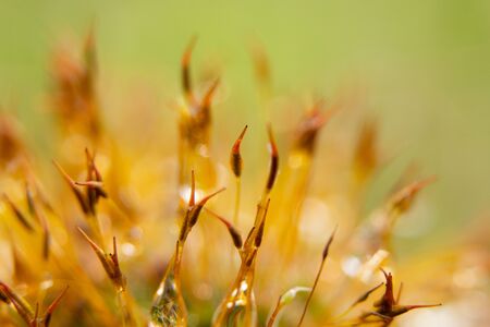 moss in the morning after rain with drops of water, macro