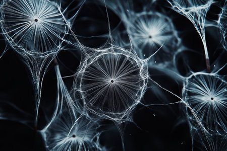 Intricate close up of dandelion seeds against a dark background showcasing nature s fragile beauty