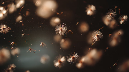 Abstract dandelion seeds floating in the air, evoking a sense of delicate beauty and natural elegance.