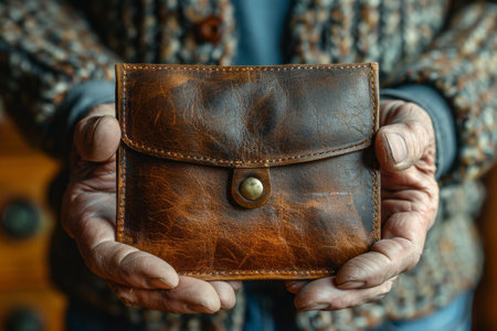 This image features a vintage brown leather wallet placed on a rustic wooden surface, highlighting its unique texture and craftsmanship. Ideal for projects focusing on fashion, accessories, or lifestyle themes.