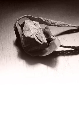 Close up detail macro view past age rough danger rubber hurt sport bullet aim lie blank tabl text space. Strong Israel hunter male jew human person fun kid boy hand pull gun hobby biblic story concept