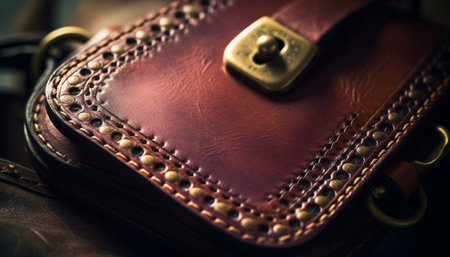 Leather bag handle, buckle, zipper, pocket luxury fashion accessory generated by artificial intelligence
