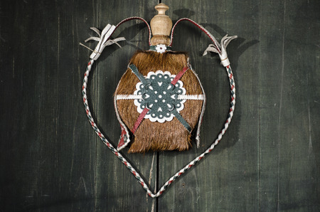 The concept of magic, witchcraft and alchemy. Apron with a set of items for witchcraft, making poisons and black magic.Composition of handmade and vintage items to designers. Historical simulation
