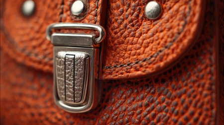 This close-up image showcases a textured orange leather bag featuring a metallic closure. Its intricate stitching highlights unique craftsmanship, perfect for fashion enthusiasts.