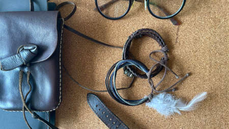 Vintage Accessories With Eyeglasses, Leather Accessories, Close up
