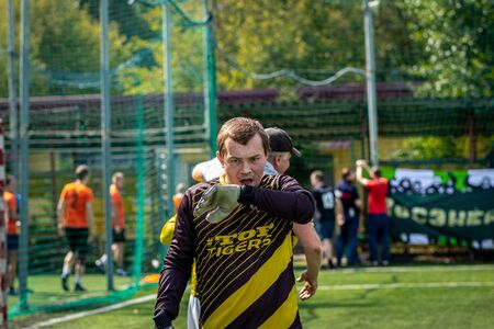 MOSCOW, RUSSIA - AUGUST 24, 2019: Soccer players in game. Amateur league in Moscow.