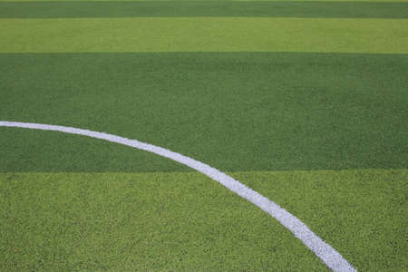 White strip in the field for football. Green texture of a football, volleyball and basketball field.