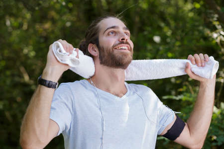 young sports man with towel after jogging outdoors