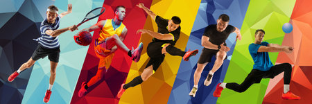 Dynamic sport collage. Athletes from various sports in mid-motion playing with focus