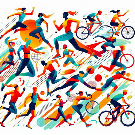 Vivid multi-sport collage with athletes in neon gradients showing motion and strength