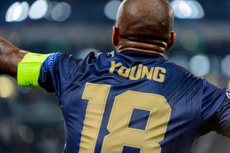 Turin - Nov 7, 2018: Ashley Young 18 emotionally reacts. Juventus - Manchester United. UEFA Champions League. Matchday 4. Allianz stadium.