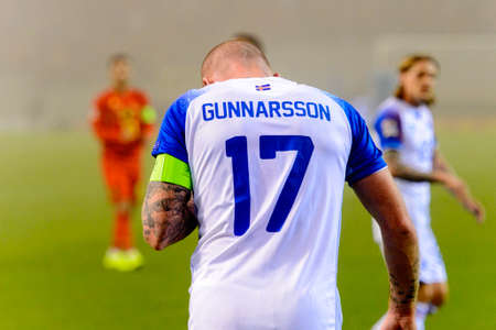 BRUSSELS - NOV 15, 2018: Aron Gunnarsson 17 from behind. Belgium - Iceland. UEFA Nations League.