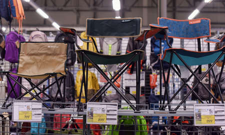 Russia, St. Petersburg 25.06.2015 Tourist chairs in a supermarket