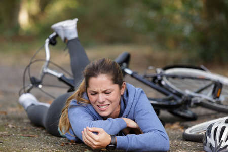 a young woman fell off a bicycle and is suffering
