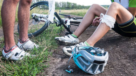 Unhappy injured cyclist and caring driver