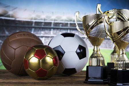 Winning trophy championship award, sport stadium background