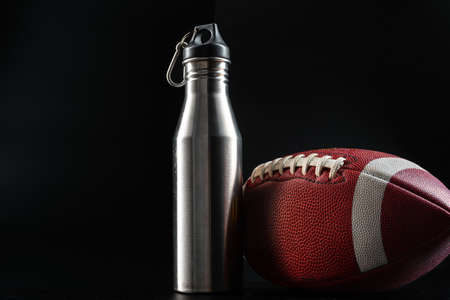 American foottball ball on dark background close up