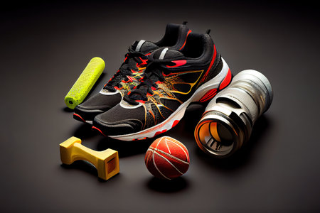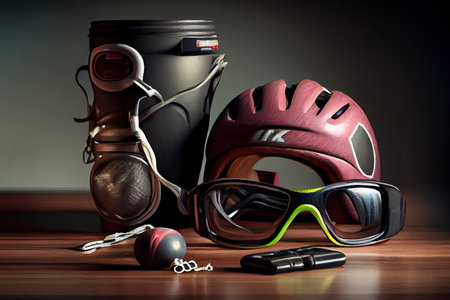 Exciting sports equipment collection indoor setting still life textured background close-up view athletic inspiration