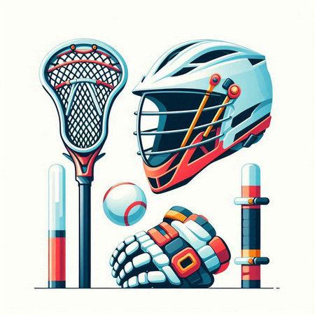 Close-Up Of Lacrosse Equipment On Blue Background. Team sport concept.