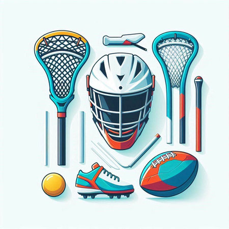 A collection of sports equipment, including a helmet and a jacket, arranged in a vibrant display, Explore the vibrant colors and patterns of team uniforms and equipment