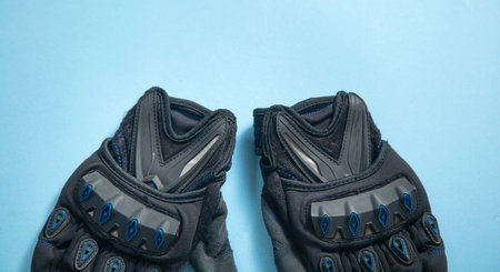 Motorcycle gloves on the blue background.