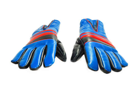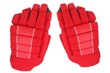Old red hockey gloves for goalkeeper. Isolated over white background