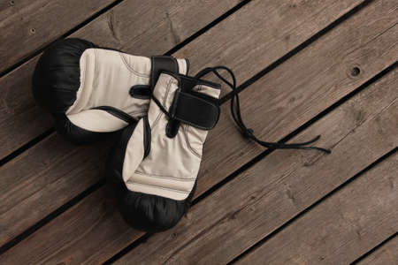 black mma gloves on a wooden background