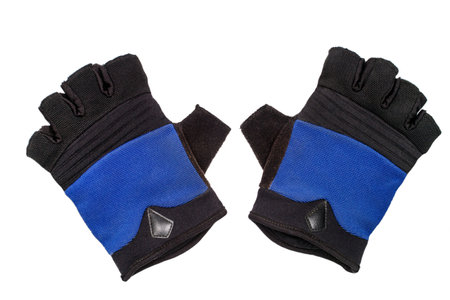 Fingerless sports gloves on a white background. Blue protective gloves for sports.
