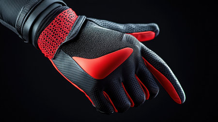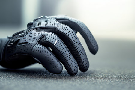 Close-up of a black glove showing its textured surface, ideal for enhanced grip during sports or work.