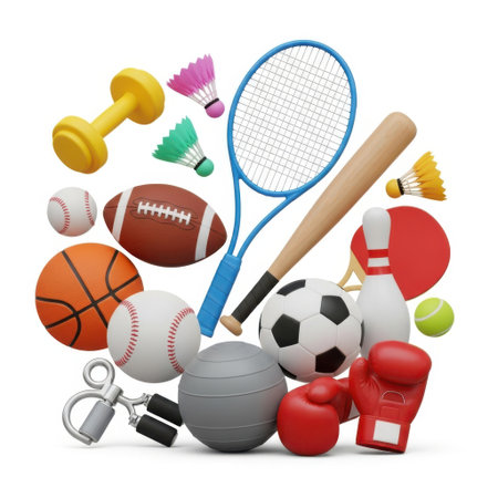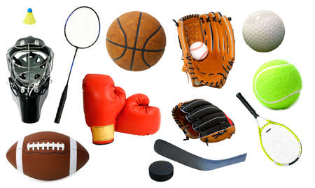 Arrangement of several sports items.