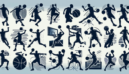Basketball player silhouettes. Vector illustration of basketball players in action.