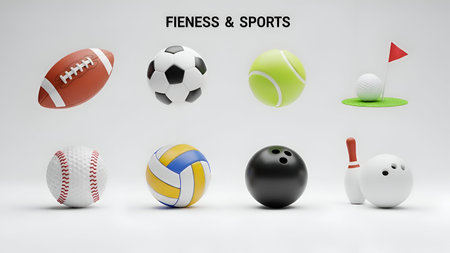 Composition of various sport equipment for fitness and games