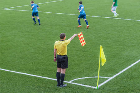 Referee from the sidelines of a soccer game.