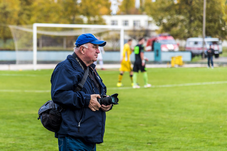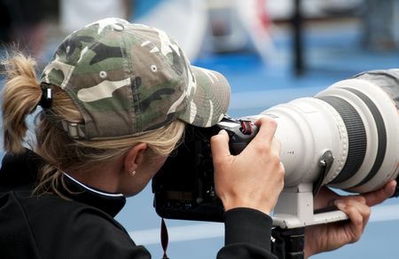 photoreporter with telephoto lens on a football match.