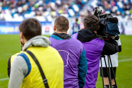 TV at the soccer. Professional digital video camera.