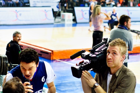 TV channel operators shoot a sport game