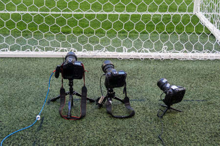 TV camera at the stadium during football matches. television camera during the soccer match